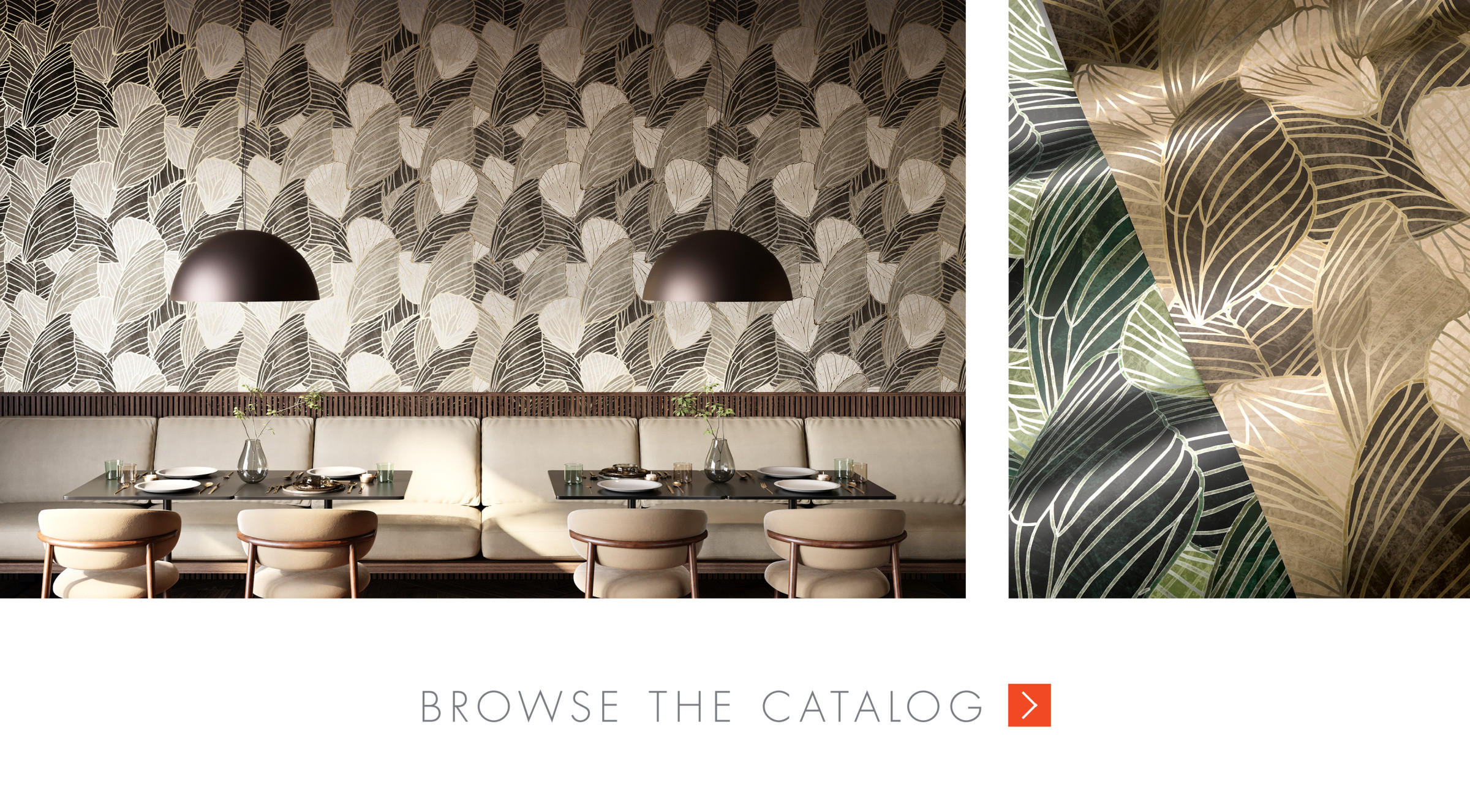 For our Summer collection, we delve into the captivating beauty of the insect world and the striking variety of patterns that can be found in a lush garden. We use this as inspiration for the six bold wallcoverings in this collection, creating new interpretations of flora and fauna and their natural patterns. Each design in the collection is printed on a substrate that best enhances the delicate balance of color and pattern, such as adding a hint of mylar that shines through a wing-like pattern or printing over a metallic fabric-faced vinyl to enhance the ombre finish and give the wall a golden hour glow.