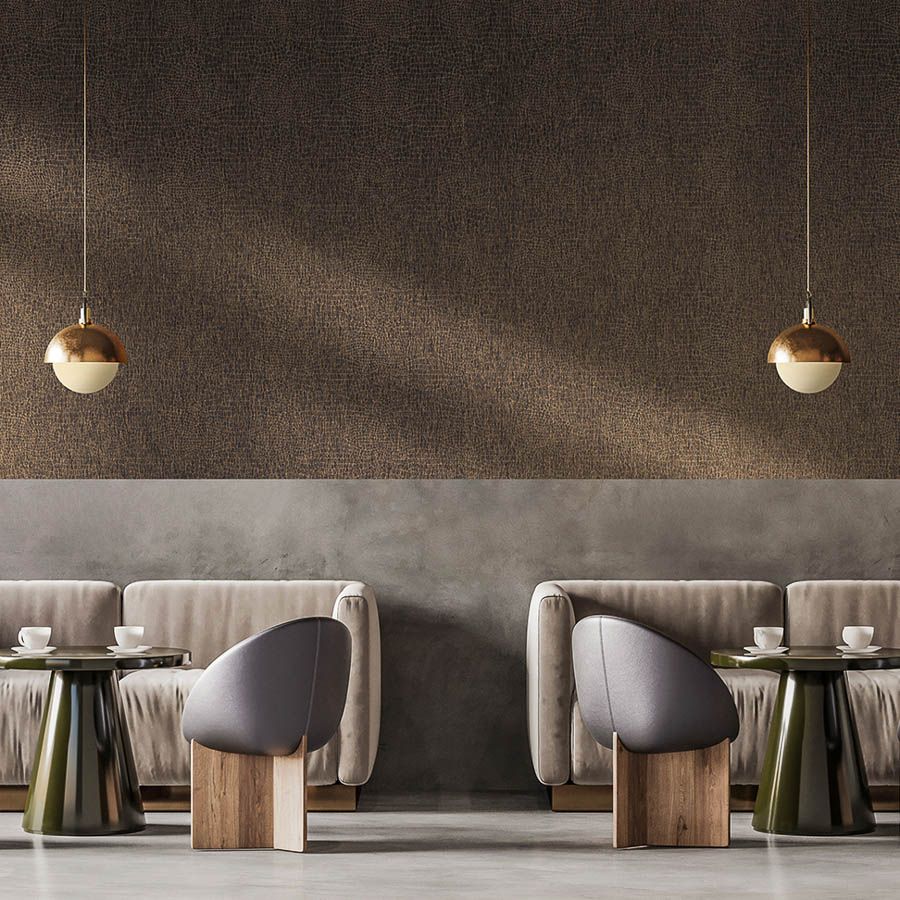 In a subtle, elegant take on crocodile, Crok’s deeply embossed pattern is camouflaged by a lustrous, two-tone textile. Made by adhering durable polyester yarns vertically to a non-woven backing, then embossing the surface with a heavy roller (the type typically used to imprint thick, supple leather), Crok offers the warmth, refinement and depth of a textile wallcovering with a surprising bite. The timeless reptilian pattern is available in seven metallic colorways, including darkly seductive red Morelet and Black Caiman.